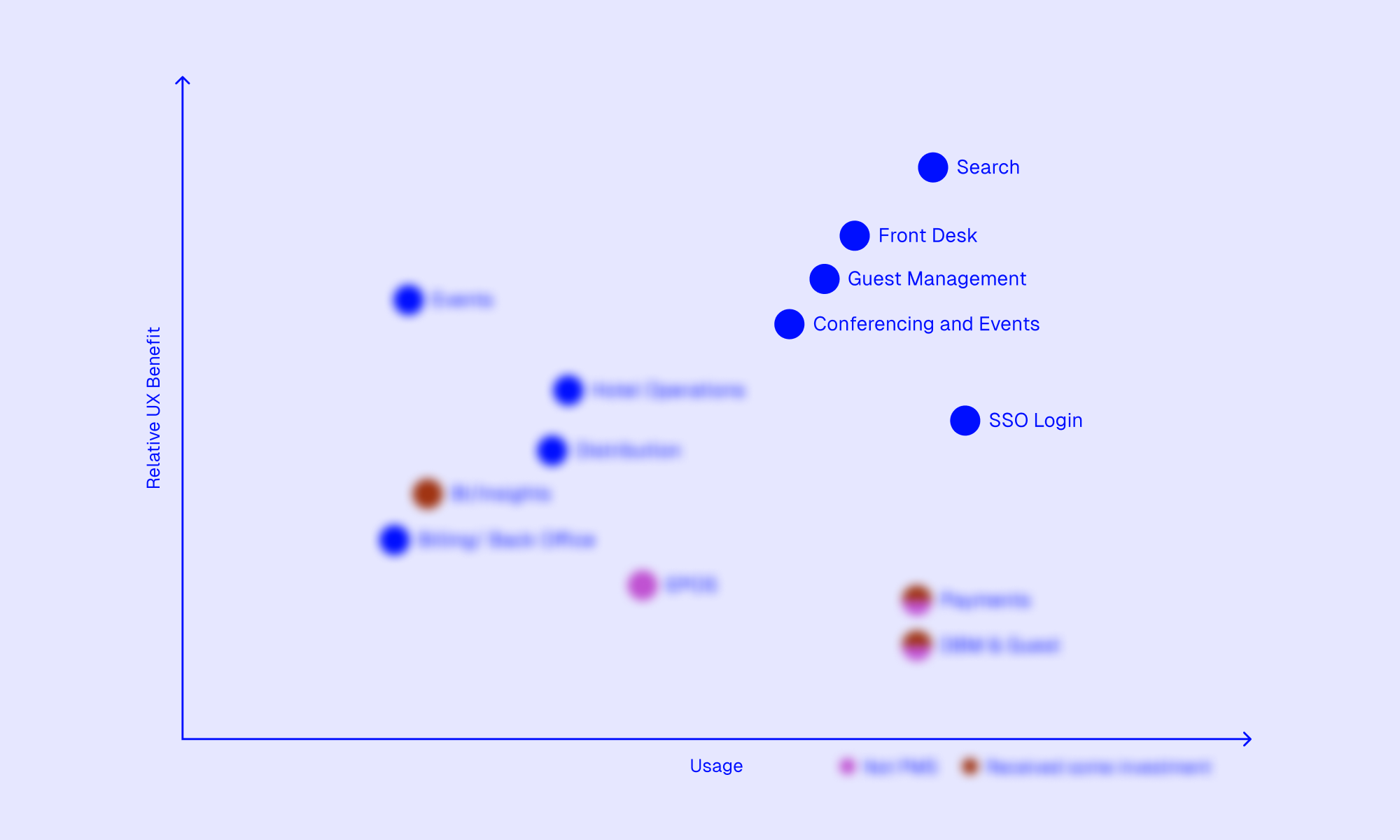 Usage vs UX Benefit, was an important way to measure the most relevant pain-points for users and costumers, but more analysis considering possible impact to sales and to the system foundations were considered in order to choose where to start.