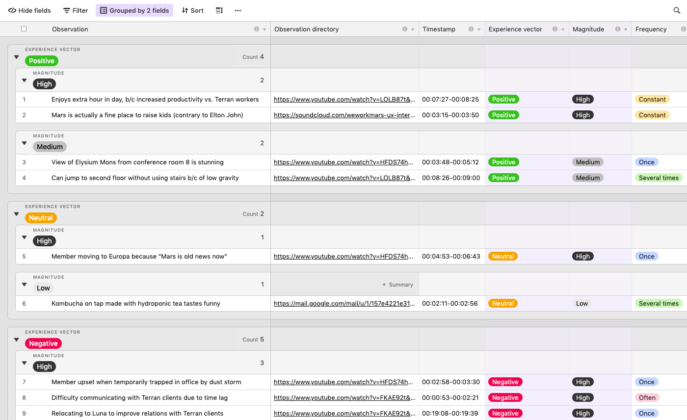 Often the conversation led to “where can I find what users think about...”, and to support the design and research team effort we implemented the feedback nuggets library using Airtable.
